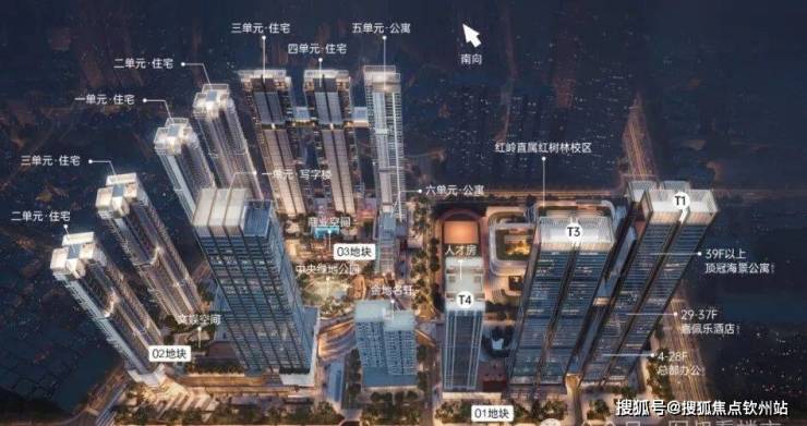 金地环湾城总占地9.6万㎡,总建面103万㎡, 共分四个地块开发。其中01地块包含写字楼、办公公寓、人才房以及幼儿园;02地块包含栋写字楼、2栋住宅、8层的商业体;03地块包含4栋住宅+2栋公寓;而04地块则是在建中的红岭教育集团红树林校区。