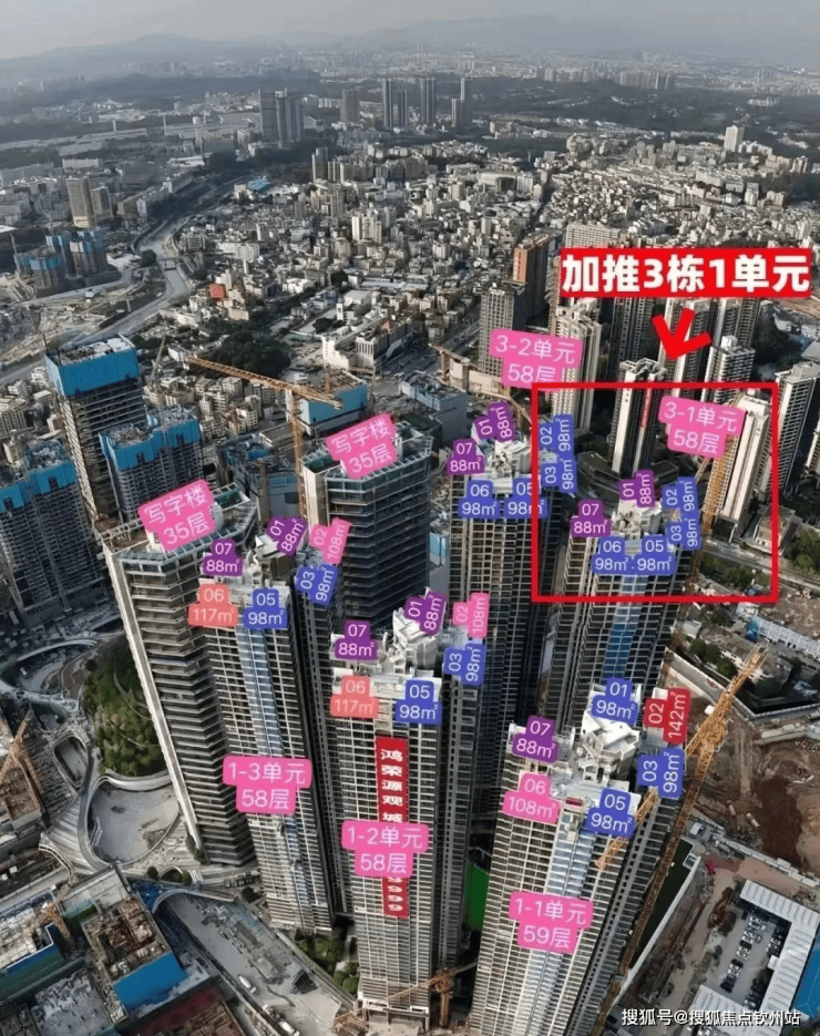 本次首推的08地块,备案名:未来平方云山府,由鸿荣源集团打造,共分3期建设,总占地面积约2.73万㎡,总建筑面积约37.41万㎡,计容建筑面积约27.51万㎡,容积率9.23,绿化率32.01%,共由5栋58-59层高住宅组成,其中1栋1单元住宅59F,1栋2/3单元住宅58F,3栋1单元/2单元住宅58F,4栋1/2单元写字楼35F,2栋是1所18班幼儿园,配建有公交首末站。