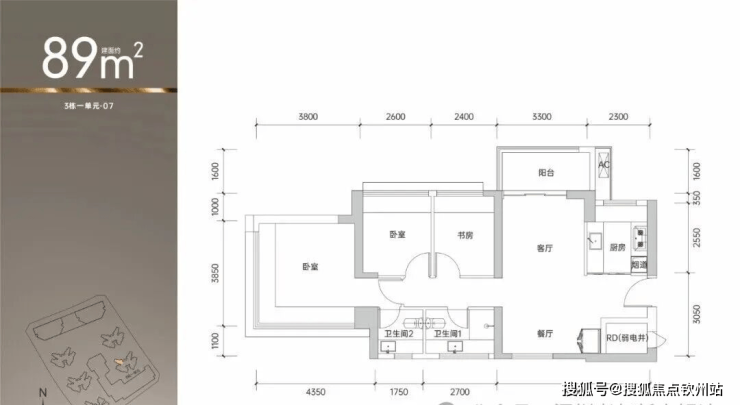 07户型:88平(南北通透)单价38200-39100,总价336-344万。