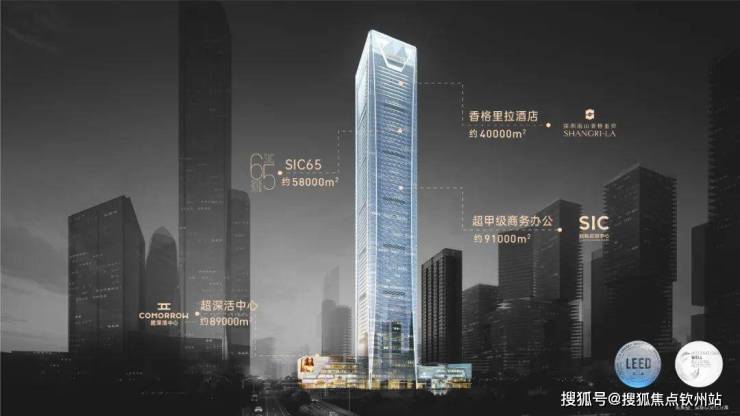 358米深圳第九高楼,深超总片区首个TOD商务综合体,集购物中心、五星级酒店、超甲级办公及私邸于一体,定位“全球城市灯塔地标”