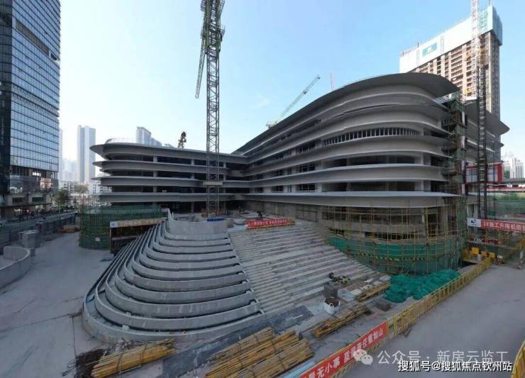 商圈还未铺设地砖,楼梯口也已经用黑色的围挡进行隔离, 看来应该是和商品房不会同期交付。