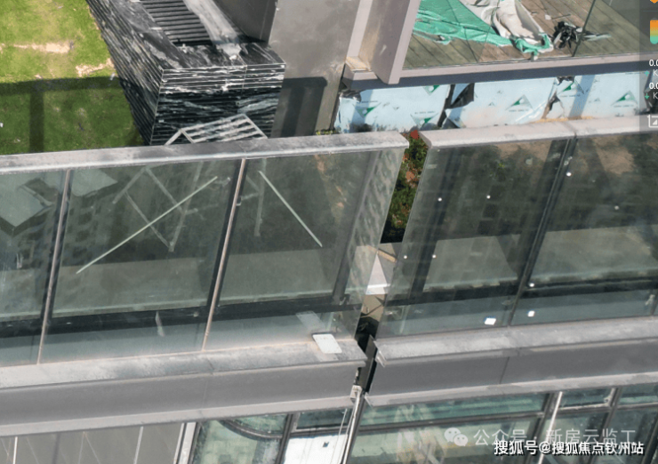 这里我插个疑问,空中连廊玻璃围栏的这个开口目测不低于20公分(此处是空中连廊的伸缩缝,不能硬连接),不知未来打算怎么处理,现在这种状态个人觉得对于小孩和宠物来说会有点危险。