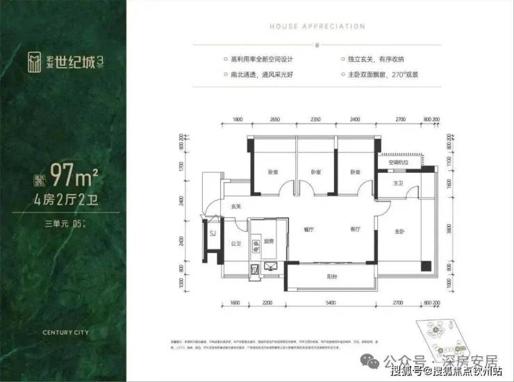 97㎡的4房2厅2卫,折后总价407-435万/套,单价4.17-4.46万/㎡。