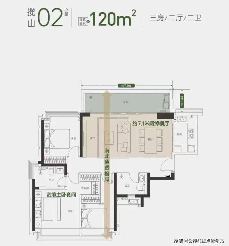 ◦ 尺度升级:横厅设计+约40㎡客餐厅,南北双阳台(景观阳台+生活阳台),通风采光优异。