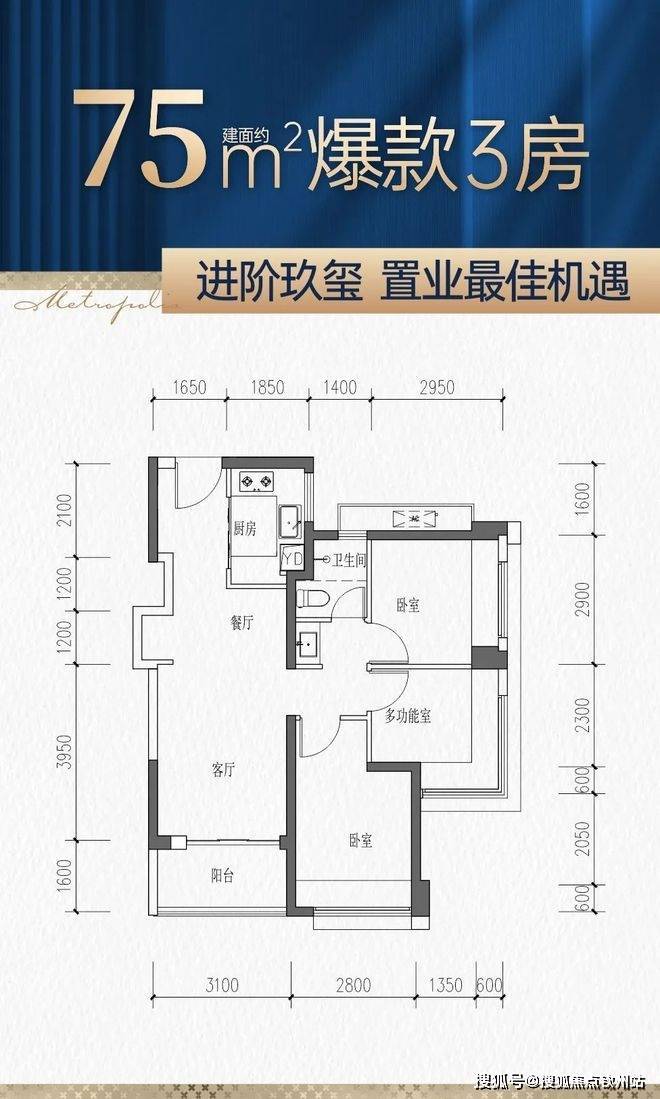 ,设计的是竖厅格局,客厅3.1米开间,LDKB一体化,S墙设计预留冰箱卡槽位,3个卧室分别做到了主卧10.2㎡/次卧8.55㎡/次卧7.95㎡(包含墙体飘窗),U型厨房,卫生间三段式分离,得房率约77%(不含赠送),西南朝向。