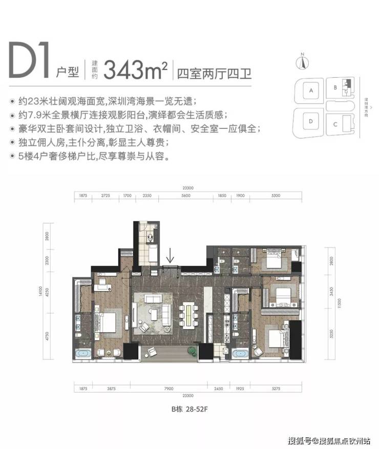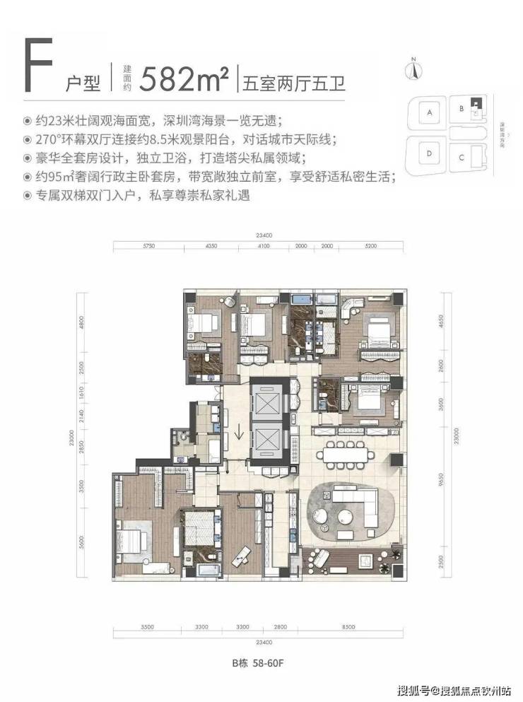 约343㎡4房2厅4卫(约23米观海面宽,海景、湾景、城市景观一览无余)
