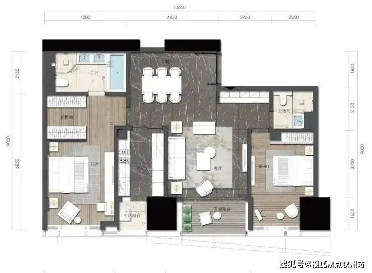 约164㎡2房2厅2卫(独立入户玄关,动静分离,约33㎡豪华主卧,承载品质生活)