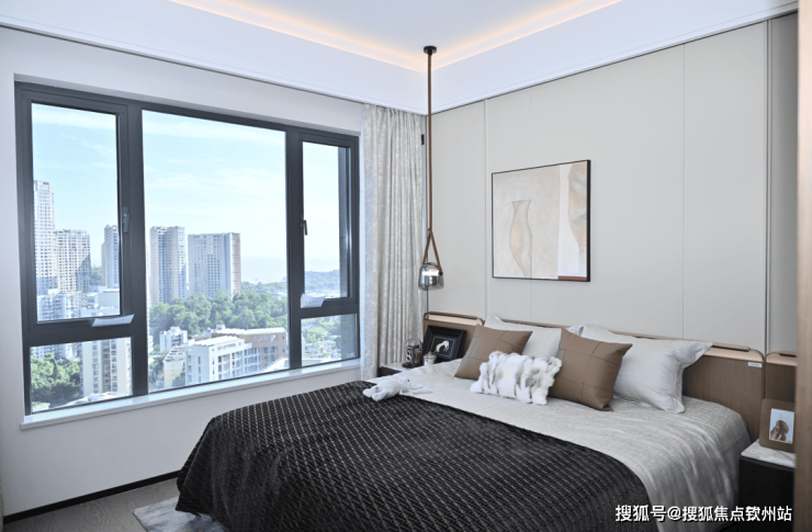 主人房朝北,带有独立卫生间,保障了主人的私密性。虽然朝北,但是可看一线海景及港珠澳大桥,景观视野开阔。