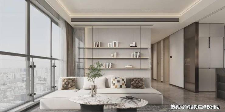从效果图可见,项目外立面全玻璃幕墙,呈现出现代简约的设计风格,体现出都市化的高端居住氛围。同时,能看出采用了大面积开窗面设计,窗地比仅0.5,远超市场标准,无疑是高端产品的设计。