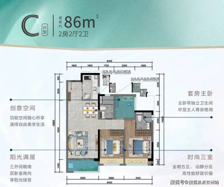 建面约86㎡2+1拓展空间,高性价比实用户型