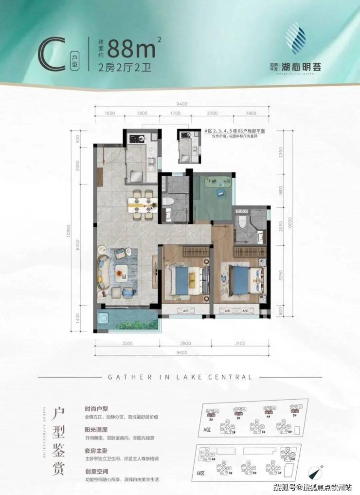 招商华发·湖心明荟,3室2厅1卫,建面79m²,南朝向,约86.5万/套。