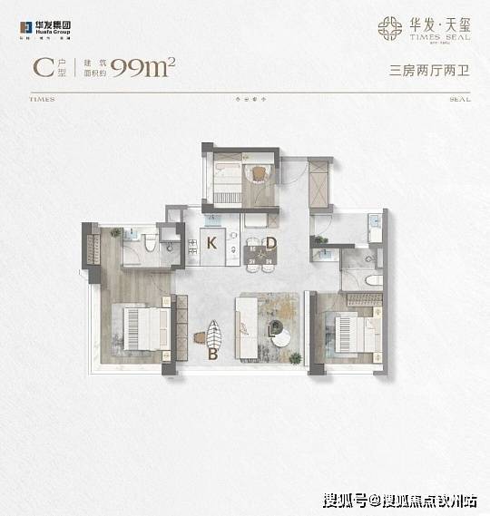 99㎡三房两厅两卫:约215-223 万元(首付 64.5 万起,月供约 7900 元 / 30 年)