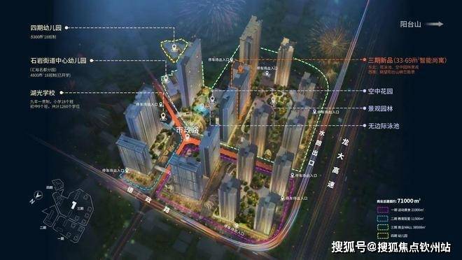 约82万㎡醇熟大城,集高品质人才居住房、天际公寓、商务办公、集中商业及多层叠的生态园林造景于一体。总户数约9300户, 配备约1万㎡18班制幼儿园,紧邻27班九年一贯制学校(湖光学校)、K12深圳曼彻斯通城堡学校。