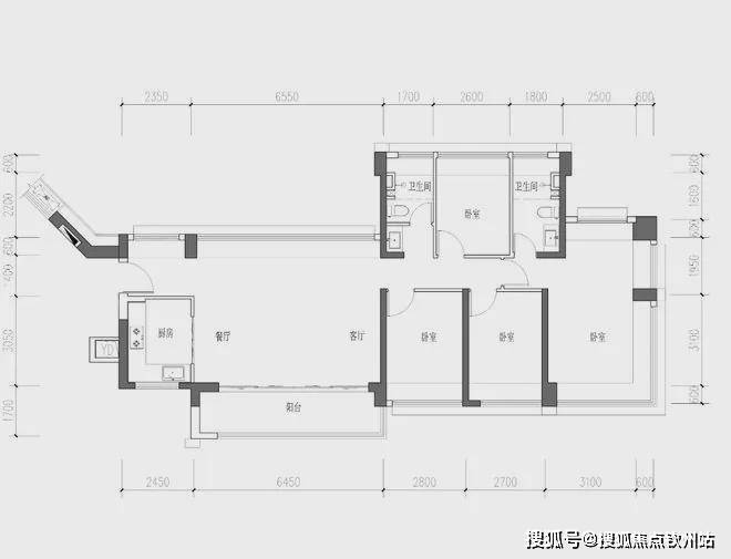 ,设计的是竖厅格局,客厅3.1米开间,LDKB一体化,S墙设计预留冰箱卡槽位,3个卧室分别做到了主卧10.2㎡/次卧8.55㎡/次卧7.95㎡(包含墙体飘窗),U型厨房,卫生间三段式分离,得房率约77%(不含赠送),西南朝向。