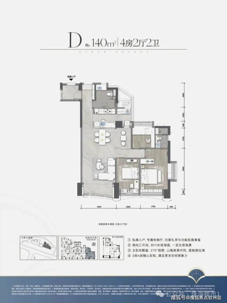 华发·云玺首推产品,共2栋板楼,建筑面积约111-140㎡一线半山海景奢宅
