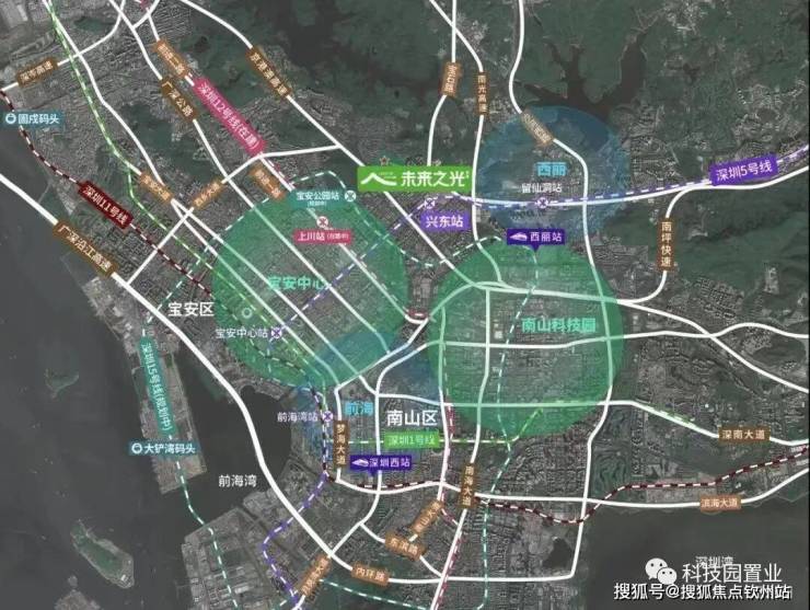 万科未来之光位于深圳宝安、南山双核交汇处,临近南山科技园、留仙洞总部基地、宝安中心、前海自贸区等片区,得天独厚的位置,让片区享受到来自四大城市高地的辐射。