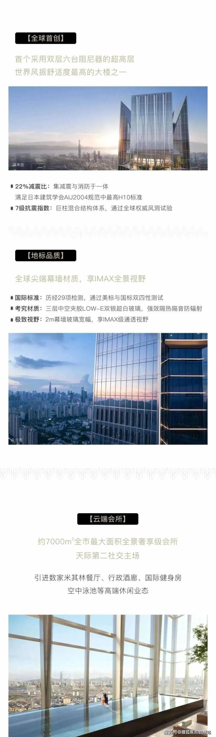 全球建筑首创:世界首个采用双层六台阻尼器的超高层建筑,进口提升推拉门,全时调节、22%减震比,过滤的是喧嚣、是从天际的震撼到室内的感官舒适。