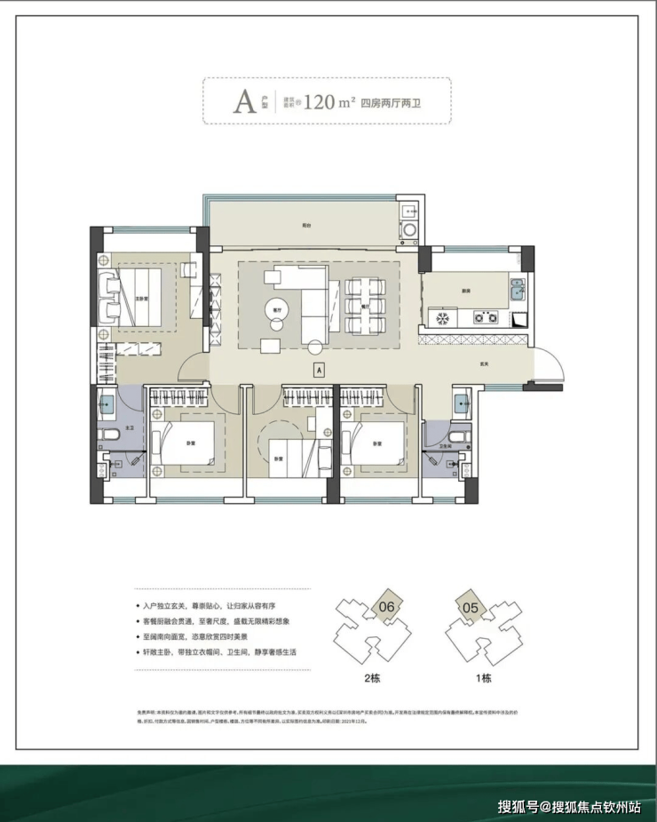 面积为75-120㎡三至四房,使用率超80%,高赠送,三开间朝南。