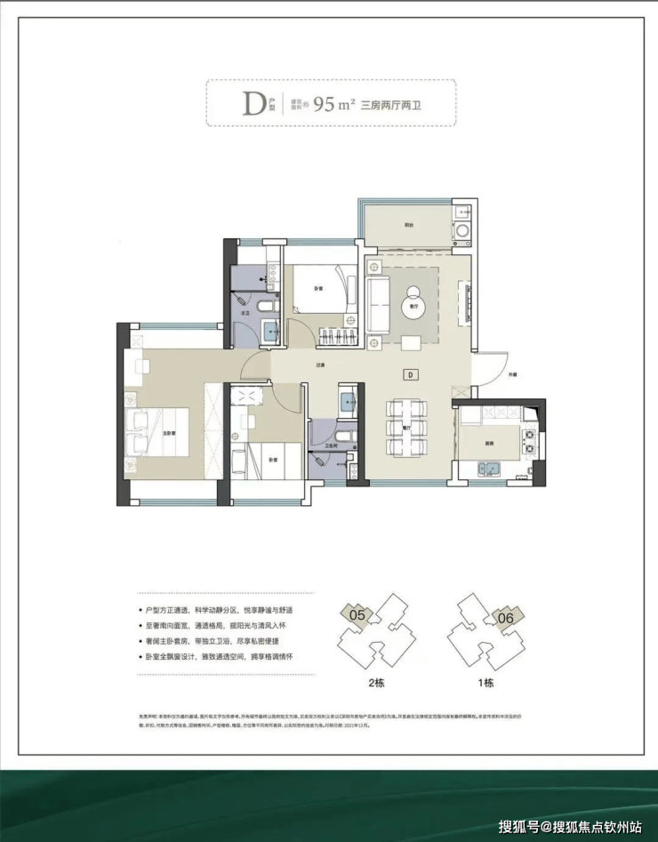 95㎡3房2厅2卫户型: