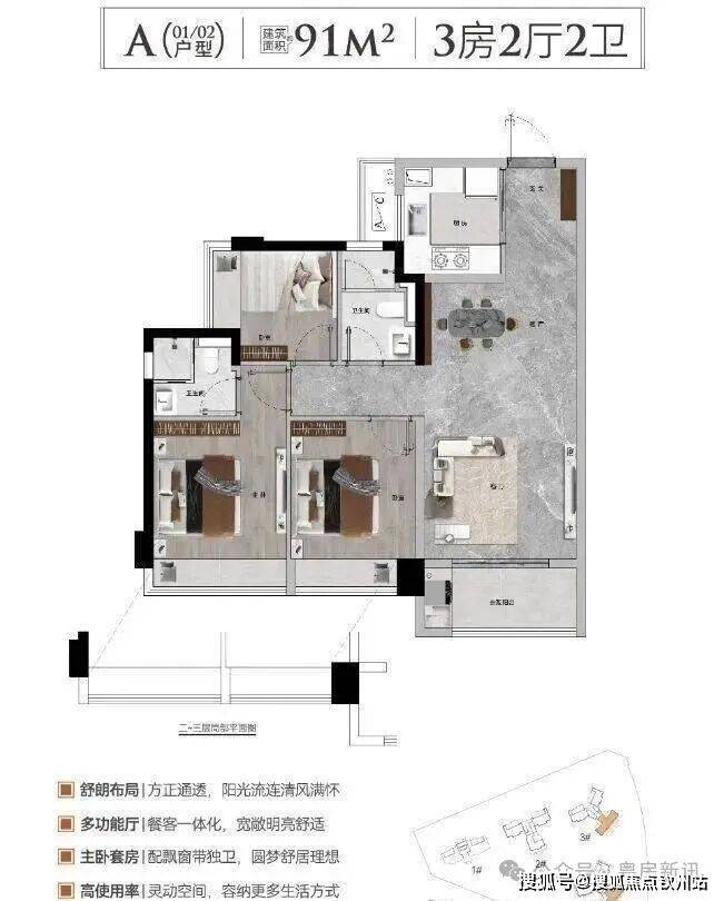 ✅ 91㎡三房:南向采光,主卧套间设计,6米景观阳台,户型紧凑、空间利用率高,折后约145万起,刚需首置门槛低、性价比拉满。