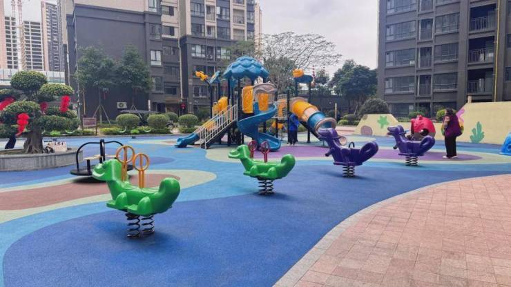 社区内配备多条塑胶跑道,面积约1500㎡的成人泳池+儿童戏水池,另有球场、儿童游乐中心……住在如画风景里,一家老小都能各得其乐。