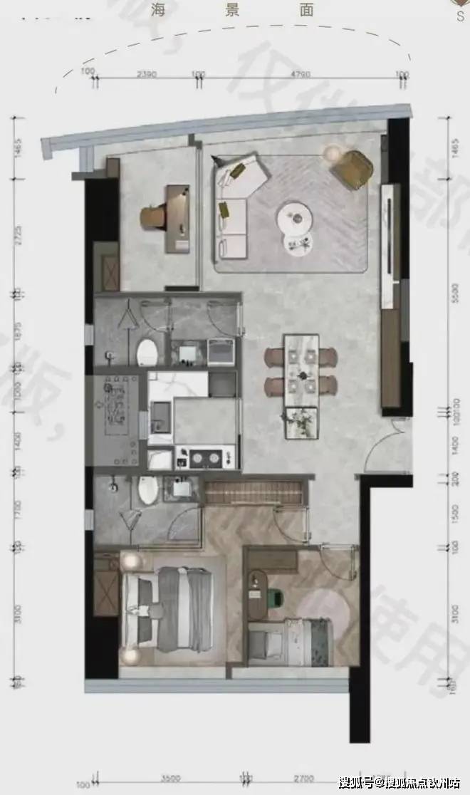 整体业态:集商务写字楼、高端商业、空中会所,以及拥有70年产业高端住宅等多元业态于一体的金融岛尖地标综合体