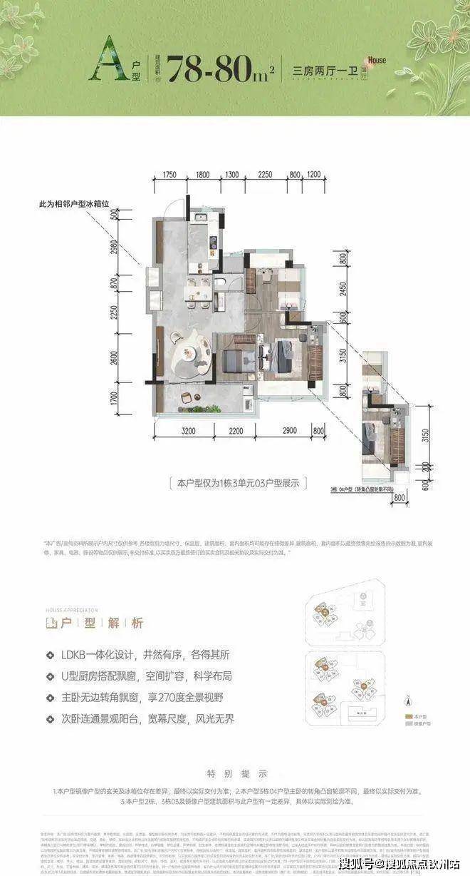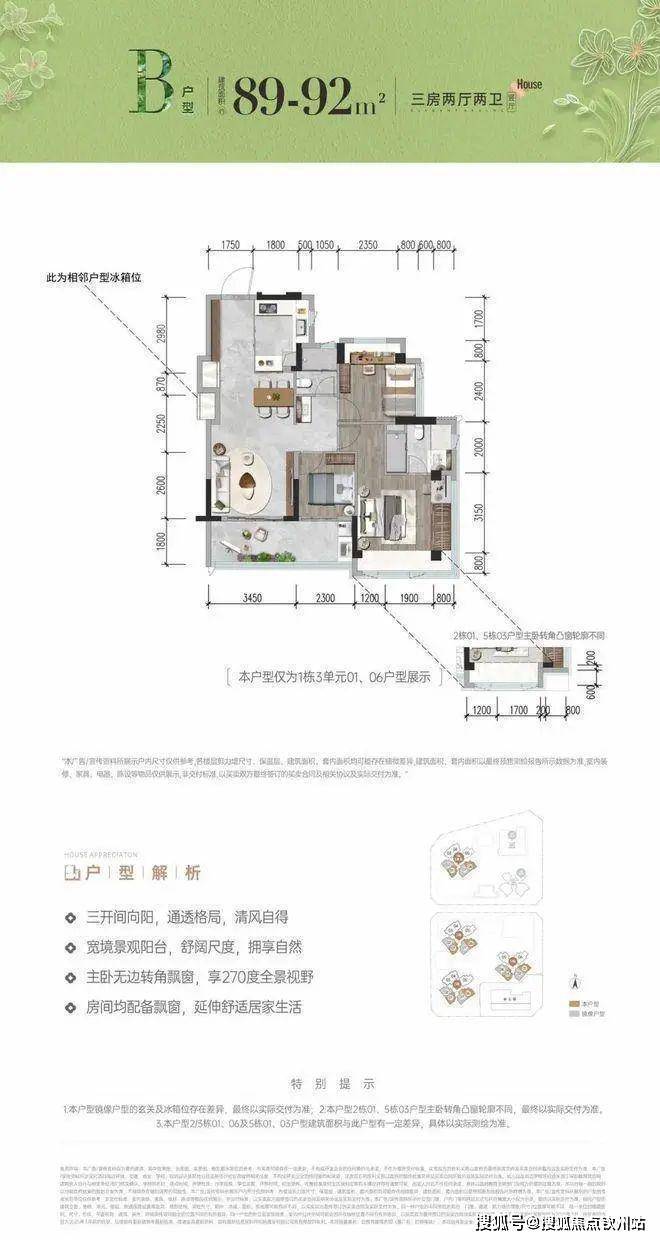 首次推首北地块1栋3单元,约80-92㎡ 3房,共195套,新规使用率高达96%-105%!