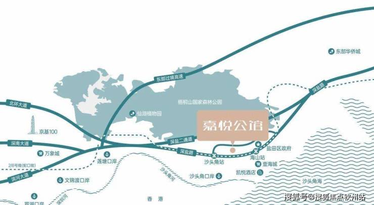 嘉悦公馆,位于盐田区沙头角街道核心区域,紧邻地铁8号线沙头角站C口,步行距离约700米,5分钟可达。项目背靠梧桐山生态屏障,南眺19.5公里大鹏湾海岸线,部分高楼层户型可享"山海双景",负氧离子浓度常年高于外区60%,空气质量优良率达100%。