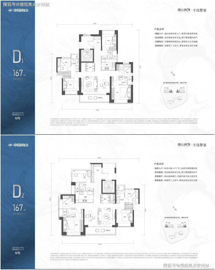167㎡5+1房2厅3卫:位于32-43F高区,户数不多,南向看海,5+1房及3个卫生间的配置功能上完全满足了。
