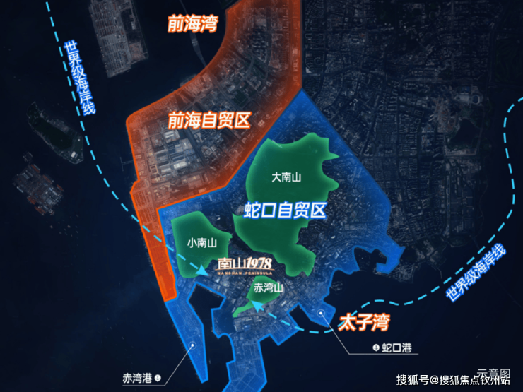 中国南山,深耕赤湾43载,以片区运营者角色,迭新赤湾约3.2平方公里土地,建面约47.7万方滨海TOD综合体(含总部办公、购物中心、高端住宅等)。