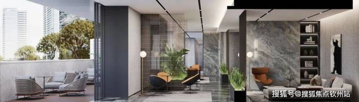 第三重,玻璃无界转换层,北塔7.5米挑高入户大厅,南塔5.5米挑高大厅,通透犹如玻璃盒子的设计,像一个奢侈品展柜,让业主从城市到自然,一键切换度假模式。