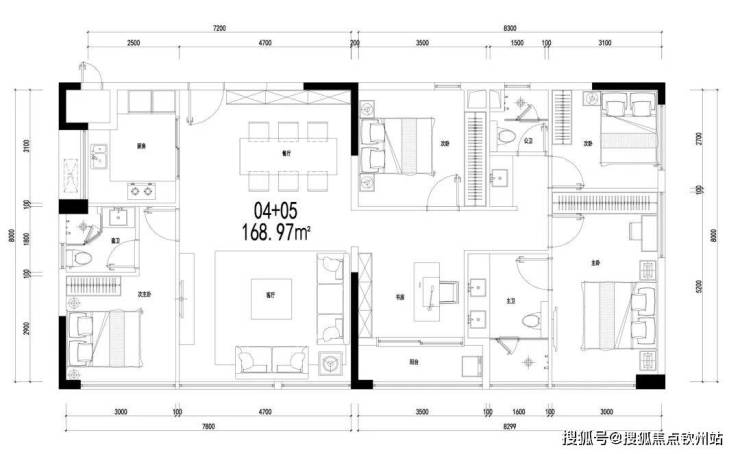 🏡C04+05户型:约169㎡阔绰舒居4房,高处视野私享无遮景致;