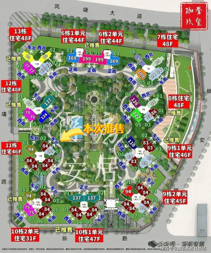 鸿荣源珈誉玖玺,由鸿荣源集团打造,总占地面积约4.79万㎡,总建筑面积约40.53万㎡,计容建筑面积约27.63万㎡,容积率5.42,绿化率40%,共由10栋总高31-48F住宅组成,其中6栋1/2单元住宅44F,7栋/8栋住宅48F,9栋1单元住宅46F,9栋2单元住宅45F,10栋1单元住宅47F,10栋2单元住宅31F,11栋住宅46F,12栋/13栋住宅48F。