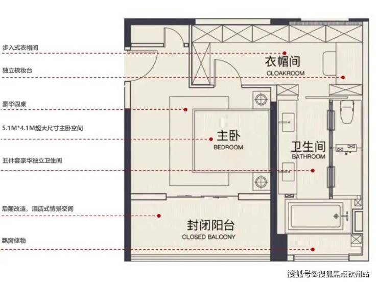 主臥大飄窗,人性化動靜分區,盡享私人空間