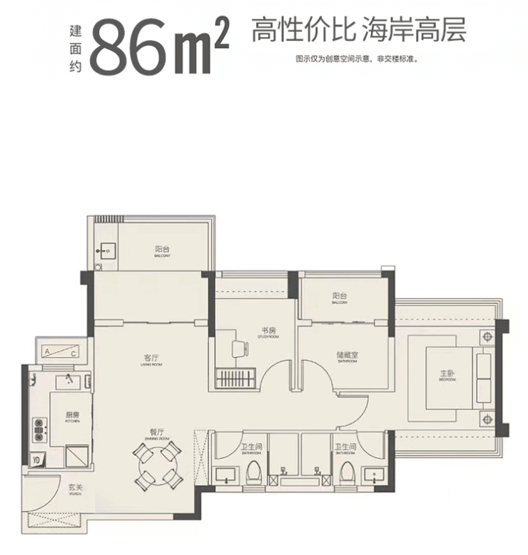 約7.8M朝南瞰景雙陽臺,坐看山海美景