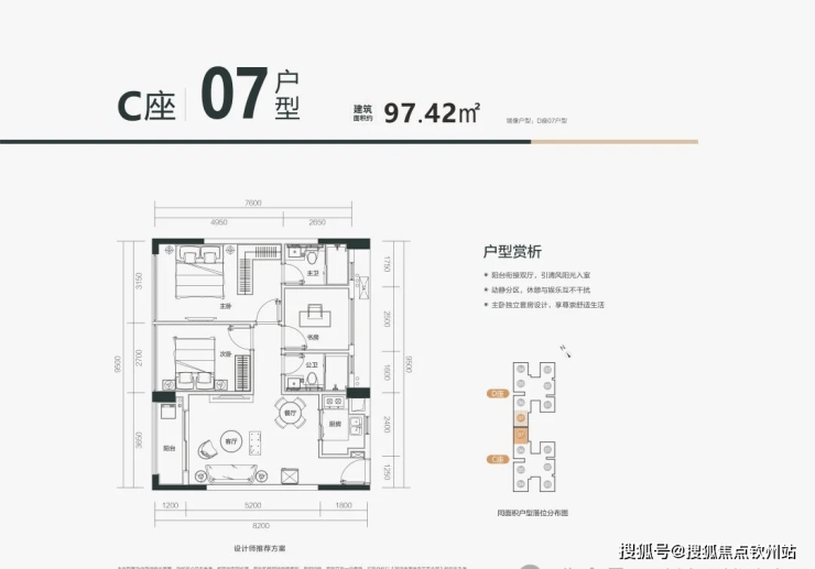 🏡C07户型:约97㎡改善级舒适大三房户型