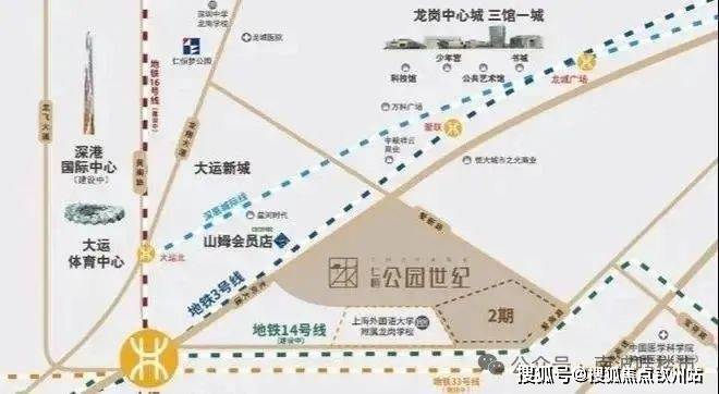 【大运枢纽站】规划4轨与此交汇。3-14-16号线(已开通)33号线(建设中中6站直达机场),乘坐14号线可8站至福田,实现龙岗与福田快速通达。