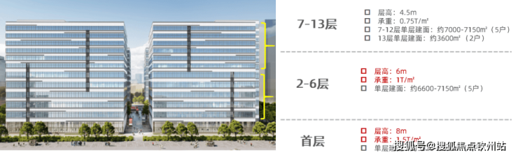 •首层8米,2-6层6米,7-13层4.5米层高,满足各类企业生产空间需求;