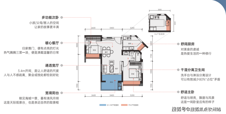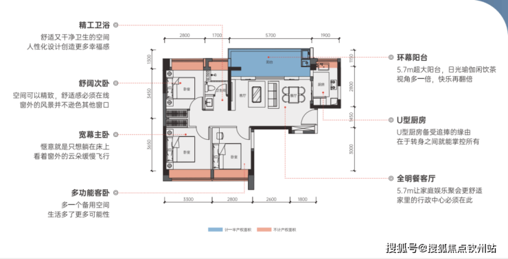 户型方正、实用率高,赠送面积多