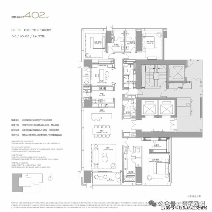 先推的是T3栋,一共就123套房子,低区可以选300平米、327平米和400平米的户型。高区有400平米、570平米,以及顶配的1000平米的超级大平层。起步就是纯粹大平层社区,定位非常清晰。