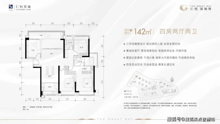115方和142方南北通透四房,不过这个南北通是阳台和厨房窗户南北通,开窗通风可能会有油烟进入客厅。想要景观房的有115方二线湖景和142方一线临湖景观,与深圳前海、香港大屿山隔海相望。142的户型还带7.4米的大阳台,这景观面配上这大阳台,确实不赖。