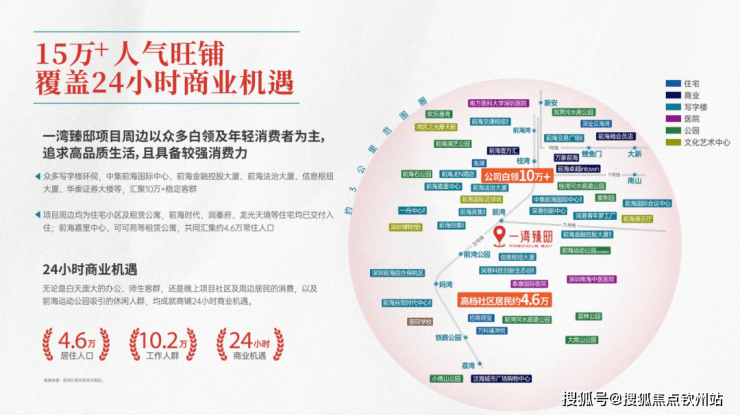 ◎5大稳定客群:周边社区、学府、总部集群、行政设施、前海运动公园等环绕,形成5大稳定消费客流,辐射周边直线距离约500m范围消费人群;(数据来源:百度地图,具体请以实际为准)