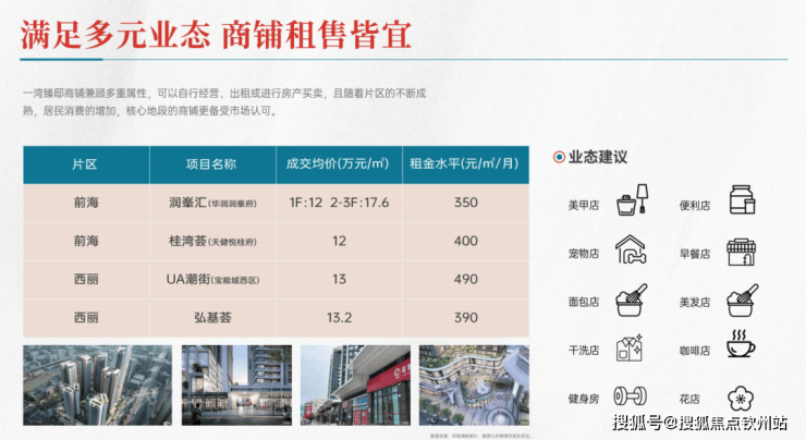 ◎24小时全覆盖商业机遇:无论是白天庞大的办公、师生客群,还是晚上项目社区及周边居民的消费,以及前海运动公园吸引的休闲人群,均成就商铺365天、24h的全覆盖商业机遇。