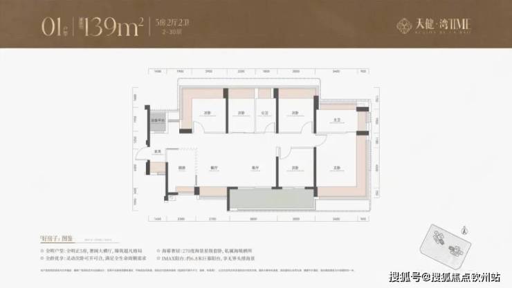139平4房户型,同样以朝南、西南朝向为主,能够享受良好的采光和海景、山景资源。