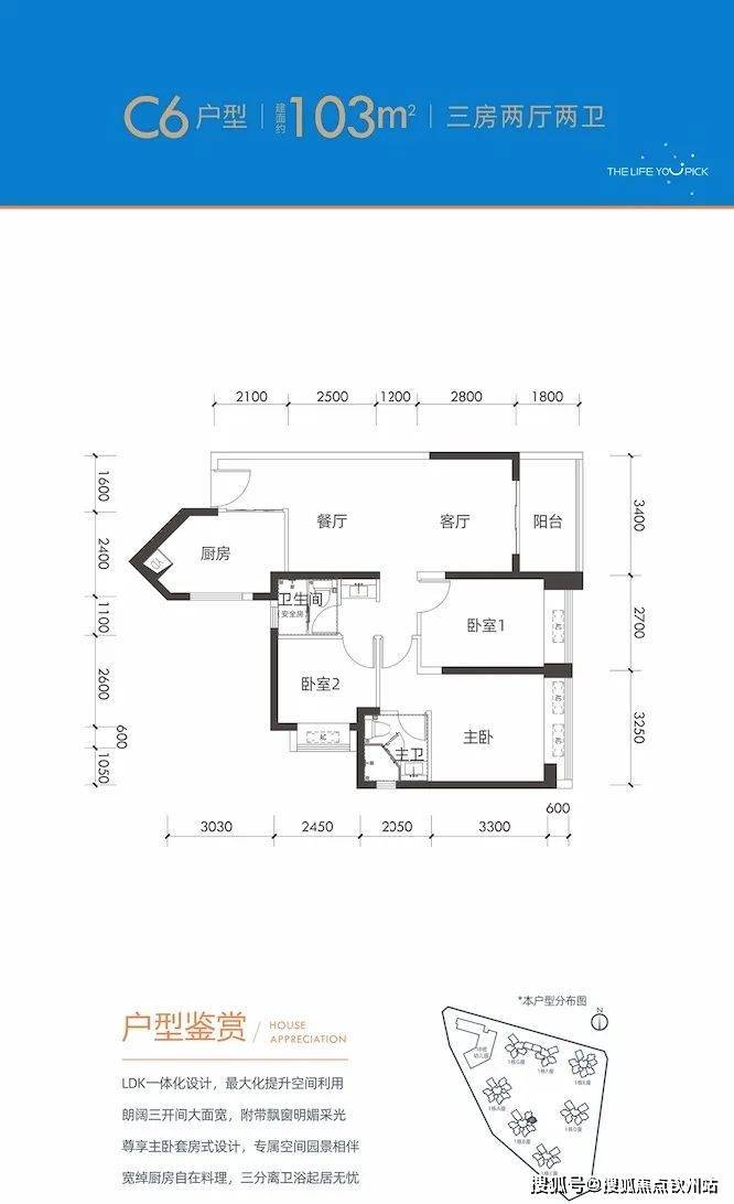 其中103㎡户型得房率明显要高一些,厨房面积大于其它四个户型。