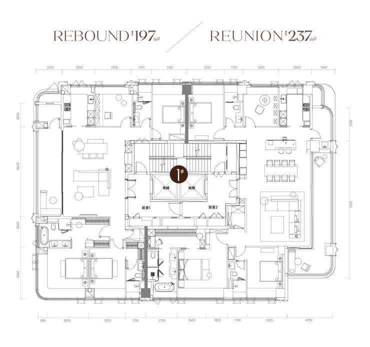 今年首开1栋的小高层住宅,约42套197-237㎡四房大平层。
