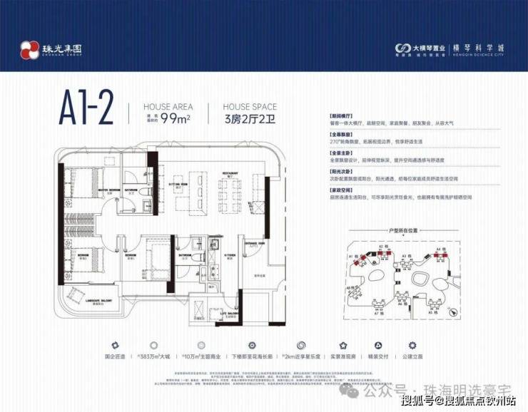 横琴科学城一期,仅6栋568席准现房住宅,建筑面积约94-100㎡精致户型,精装交付,两室及三室格局,皆以人性化设计满足多样生活需求。