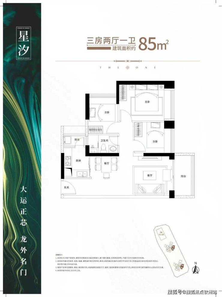 •建面约84.6-84.8㎡ 3室2厅1卫;