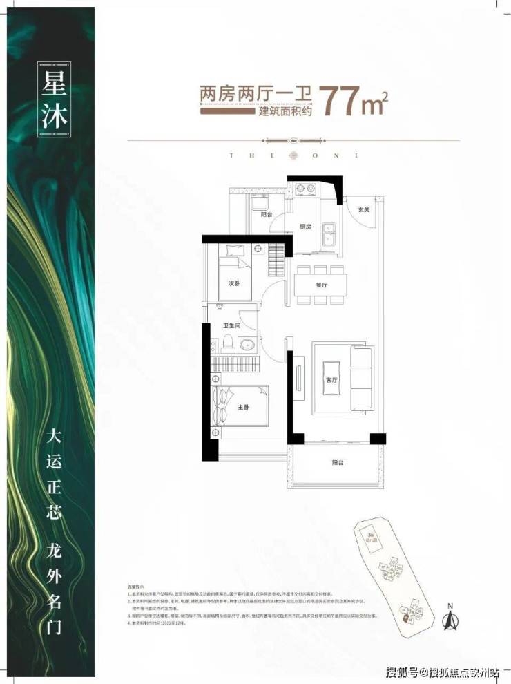 •建面约74.5-77.5㎡ 2室2厅1卫;