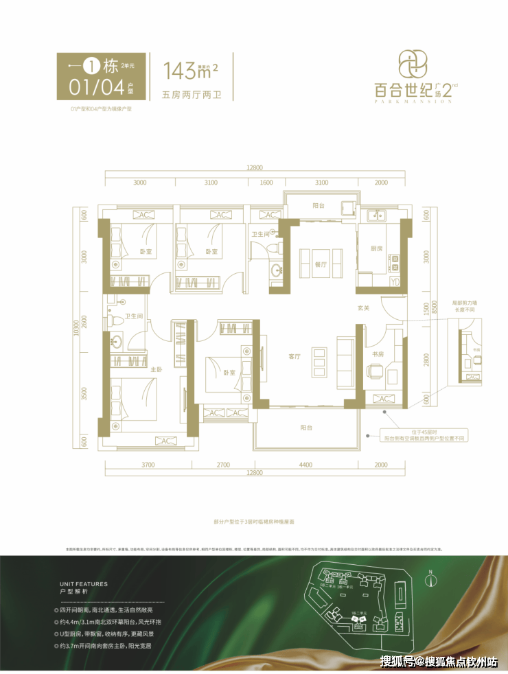 建面约143㎡的5房2厅2卫